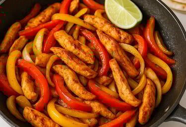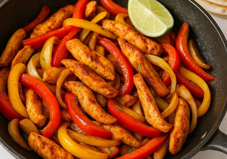 Tender chicken strips, colourful peppers, and classic fajita seasoning make this a family favourite for busy weeknights.