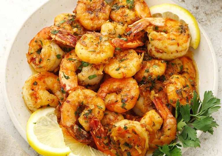 Juicy prawns are cooked with colourful vegetables in a simple homemade sauce.